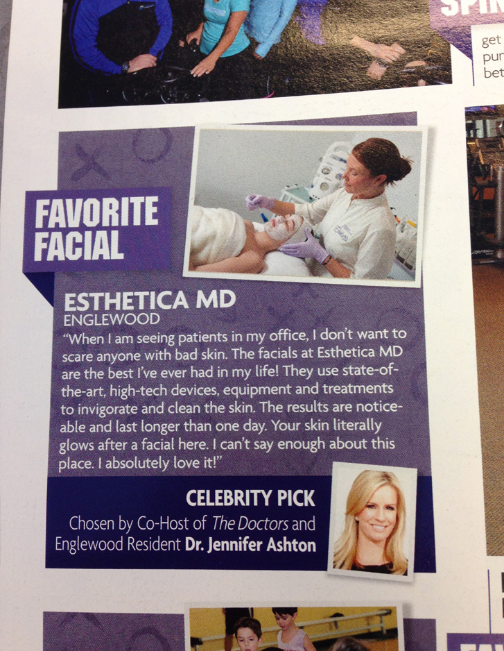 Esthetica MD were just named as a Favorite Facial (Celebrity Pick by Dr. Jennifer Ashton) in the 2014 (201) Best of Bergen Poll.